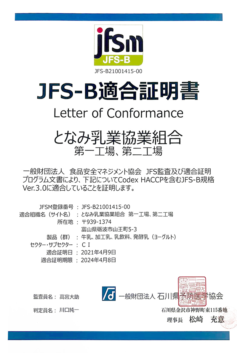 | 2023年(令和5年) | JFS-B規格 Var.3.0適合証明![]() |