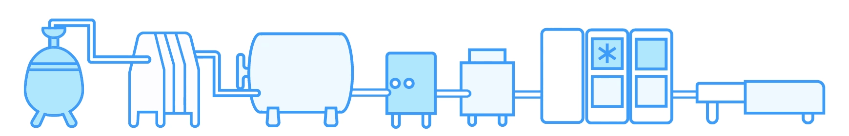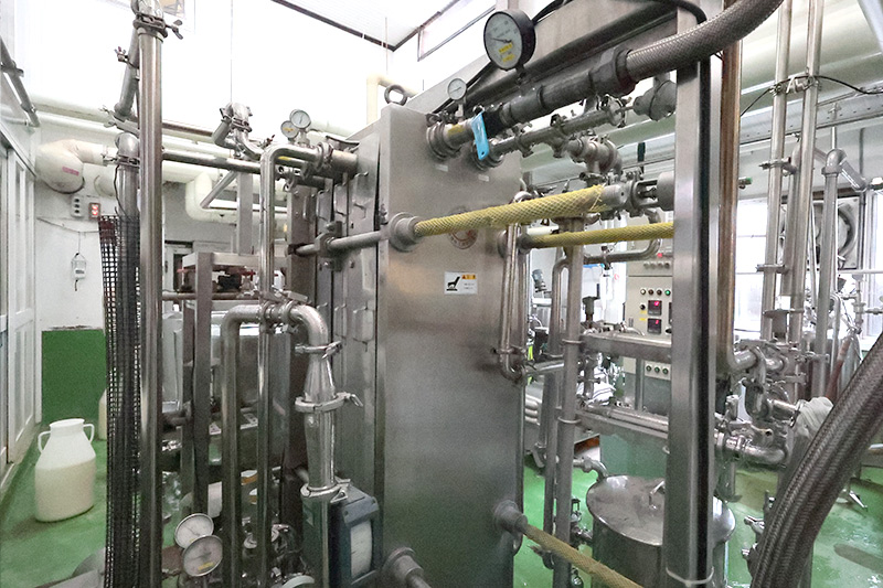 高温の蒸気の中で加熱されたプレートに牛乳を瞬間的に通して「殺菌」します。さらに、低温のプレートの間を通して冷却されます。