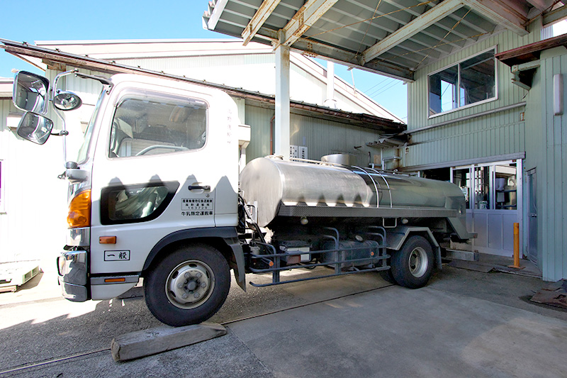 健康な乳牛から絞られた生乳をタンクローリーで工場に集めます。