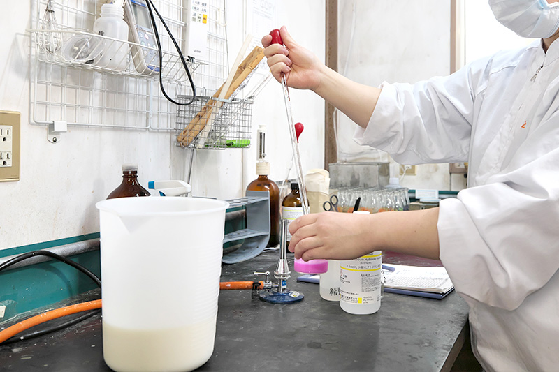 牛乳の味や香り、成分や比重、細菌の数、抗生物質などを調べ、検査に合格した生乳だけをタンクに移します。