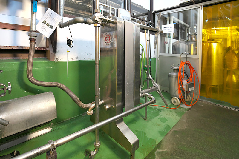 殺菌した牛乳は冷却タンクで撹拌しながら貯乳されます。