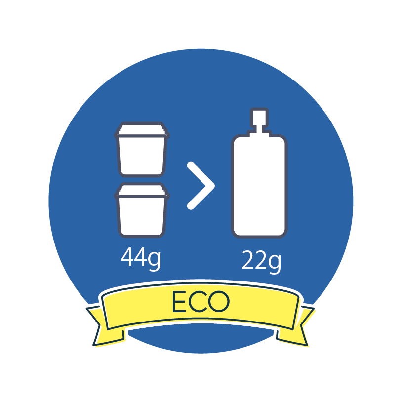 従来のヨーグルト容器に比べて、プラスチック使用量を50%低減しました。